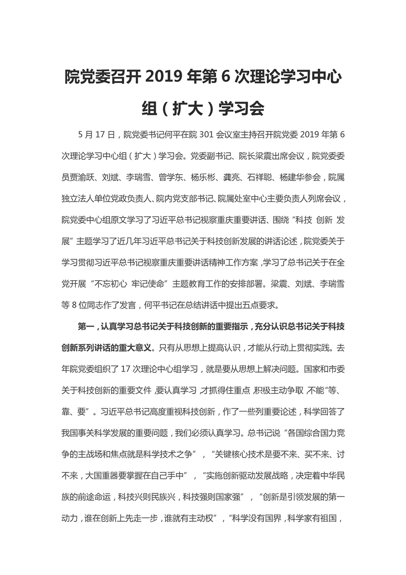 重科凯发k8官网2019年第6次理论学习中心组(扩大)学习会新闻(摘要)