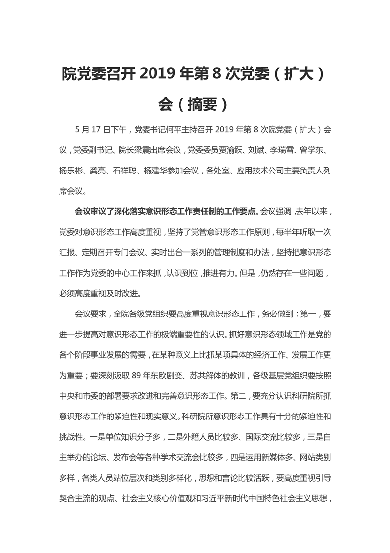 重科凯发k8官网召开2019年第8次党委(扩大)会新闻(摘要)