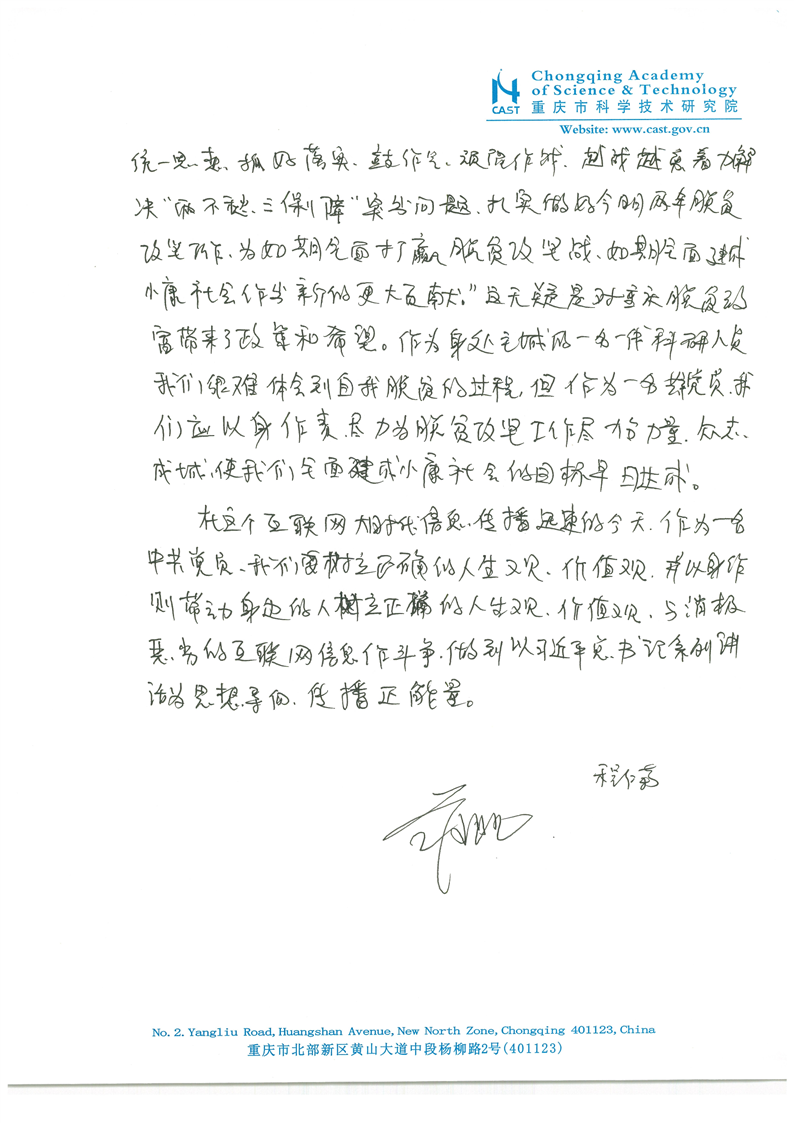学习贯彻习近平总书记视察重庆重要讲话精神的心得体会 - 程仁菊