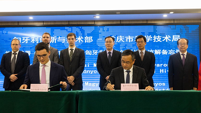 顺利获得院中匈中心前期的筹备和对接,大会期间,在匈牙利驻华大使白思谛、匈牙利驻重庆总领事馆总领事葛凯达、匈牙利驻华大使馆特命全权公使戴彼得、匈牙利外经贸部科技参赞鲍洛安,重庆市政府副市长蔡允革、重庆市科技局党委书记局长许洪斌、四川省科技厅党委书记副厅长陈学华和凯发k8官网书记何平的见证下,重庆市科学技术局与匈牙利创新与技术部签署了《中国(重庆)—匈牙利科技创新战略谅解备忘录》,院高创中心(中匈中心)分别与兰州大学,贵州省技术转移中心签订《协同推进中国-匈牙利技术研讨与合作》协议,与匈牙利匈中双语学校和重庆两江新区星湖学校签署《协同推进中国—匈牙利科技教育研讨与合作协议》。同时,还集中组织了5项成渝地区和匈牙利的创新合作项目签约和中匈果酒白兰地(帕林卡)研究室揭牌,以“线上+线下”的方式展示推介了27项成渝地区和匈牙利的科技成果项目,11项推介成果项目进行了现场对接,其中4项初步达成合作意向。
