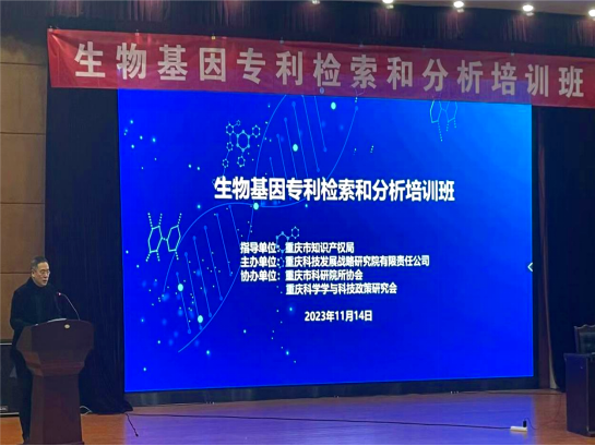 11月14日,由重庆市知识产权局指导,国家知识产权信息公共服务网点重庆科技开展战略研究院有限责任公司主办,重庆科学学与科技政策研究会、重庆市科研院所协会协办的“生物基因专利检索和分析培训班”在凯发k8官网1期3楼会议中心举行。培训采取“线上+线下”的模式,来自全市60余家企业、科研院所、高校的知识产权代表参加线下培训,2800余名代表参与线上培训。